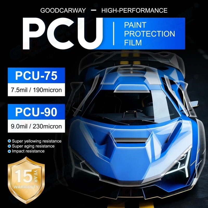 Both 7.5mil and 9mil PCU PPF thicknesses serve different installation needs, and the ideal choice depends on the location and required protection level. The 7.5mil PCU film is more flexible, easier to stretch, and better suited for complex curved surfaces such as bumpers, mirrors, door cups, and tight contours. Installers often prefer it for areas where precision and smooth wrapping are essential. On the other hand, the 9mil PCU PPF provides stronger impact resistance and is more commonly used for high-impact zones such as hoods, front bumpers, rocker panels, and fenders. Its thicker construction absorbs more force from stone chips and road debris. Both versions maintain excellent clarity, UV resistance, and self-healing, so buyers often combine them strategically for full-car protection packages.